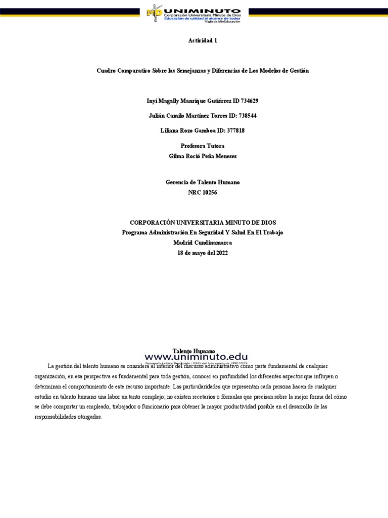Cuadro Comparativo Sobre las Semejanzas y Diferencias de Los Modelos de Gestión