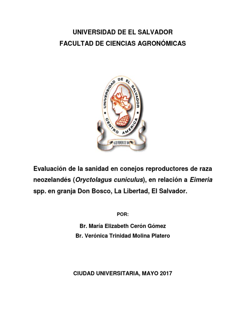 existe sobre la cunicultura en el país y sobre todo, la evidencia de Eimeria spp., como