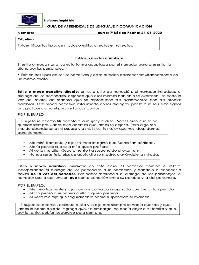 1.-Identificar los tipos de modos o estilos directos e indirectos.