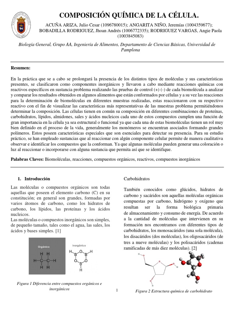 Palabras Claves: Biomoléculas, reacciones, compuestos orgánicos, reactivos, compuestos inorgánicos