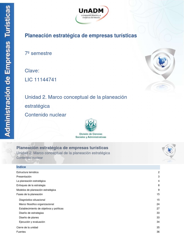 Por lo tanto, en la siguiente unidad revisarás cómo elaborar un Plan estratégico para una empresa turística atendiendo a una