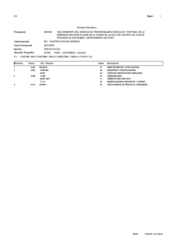 1 0.262 100.000 M 47 MANO DE OBRA INC. LEYES SOCIALES