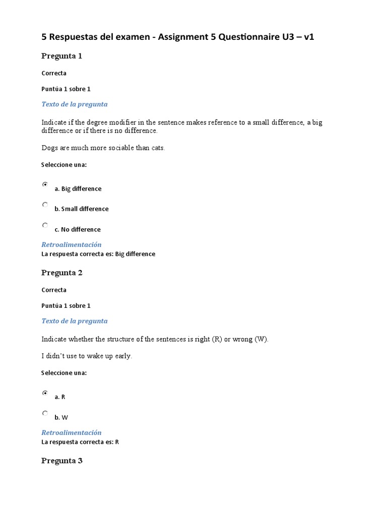 5 Respuestas del examen - Assignment 5 Questionnaire U3 – v1