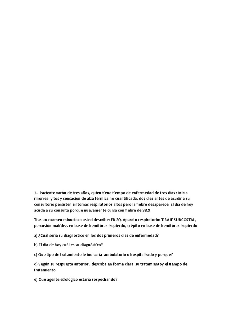a) ¿Cuál sería su diagnóstico en los dos primeros días de enfermedad?