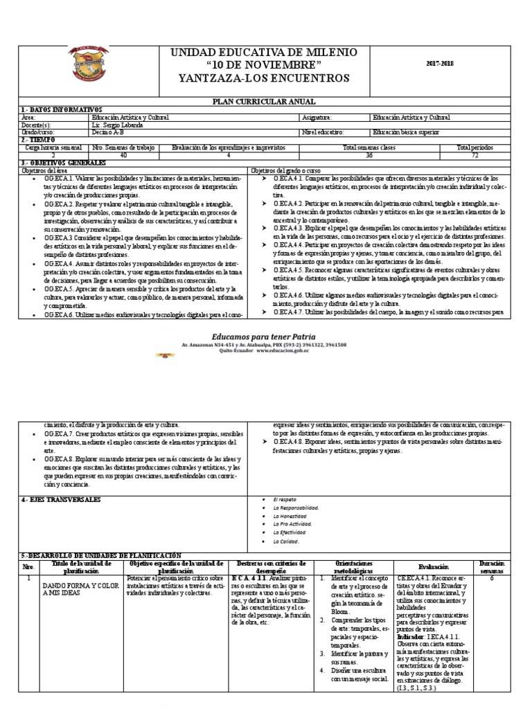 Área: Educación Artística y Cultural Asignatura: Educación Artística y Cultural