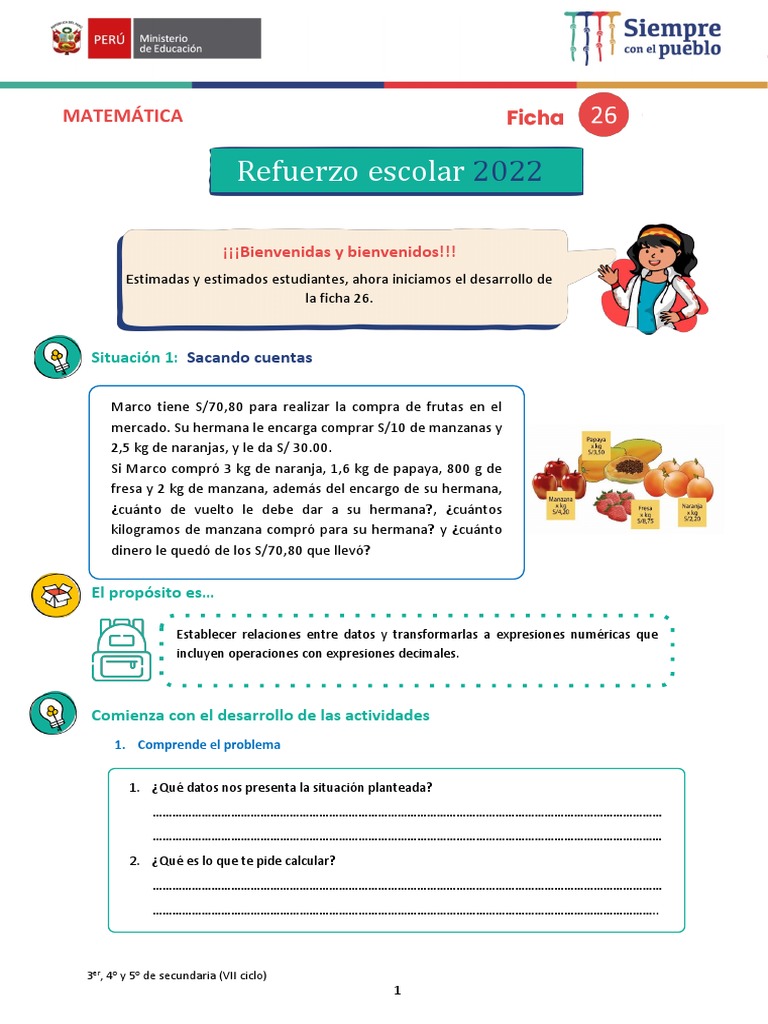 REFUERZO ESCOLAR 2022 FICHA DE MATEMÁTICA