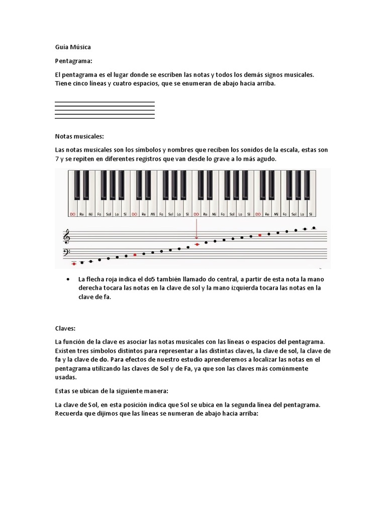 La flecha roja indica el do5 también llamado do central, a partir de esta nota la mano