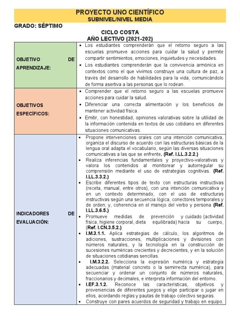 aprendizaje. El proyecto incluye actividades para cada semana,