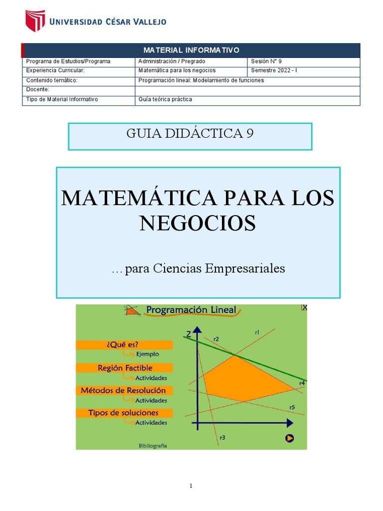 Experiencia Curricular: Matemática para los negocios Semestre 2022 - I