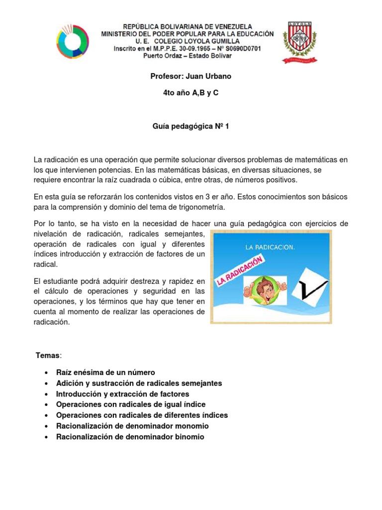 En esta guía se reforzarán los contenidos vistos en 3 er año. Estos conocimientos son básicos