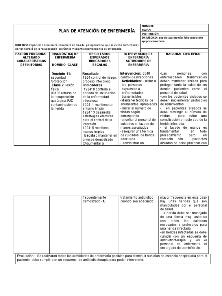 Evaluación : Se realizaron todas las actividades de enfermería posibles para disminuir sus días de estancia hospitalaria pero el