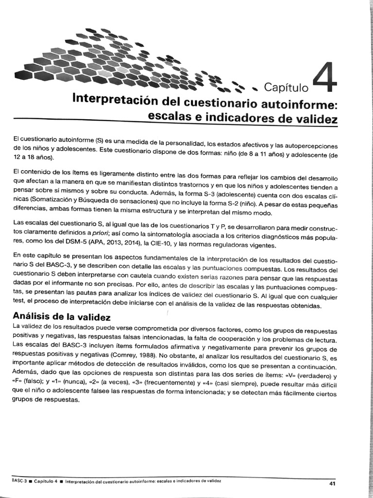 2 TBASC w Capitulo 4 w Inierpratacién cel evestonnria autoinforme: avalos endcnaore evel!