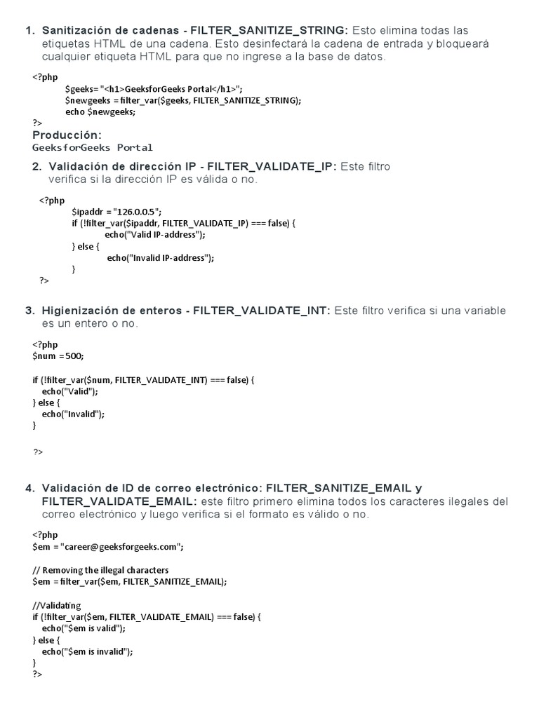 Sanitización de cadenas - FILTER_SANITIZE_STRING: Esto elimina todas las