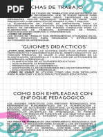 alumno realice en su cuaderno o con otro material las actividades planteadas. Los guiones se elaboran para un ciclo o grado especfico. Respecto a las fichas de trabajo, stas plantean actividades generales que pueden aplicarse con los diferentes grados, pero no son especficas de alguna asignatura, excepto las fi- chas de ortografa. Por ello, pueden emplearse y adecuarse a cualquier tema. Entre las posibilidades de fichas de traba- jo que se podran elaborar se encuentran las siguientes: