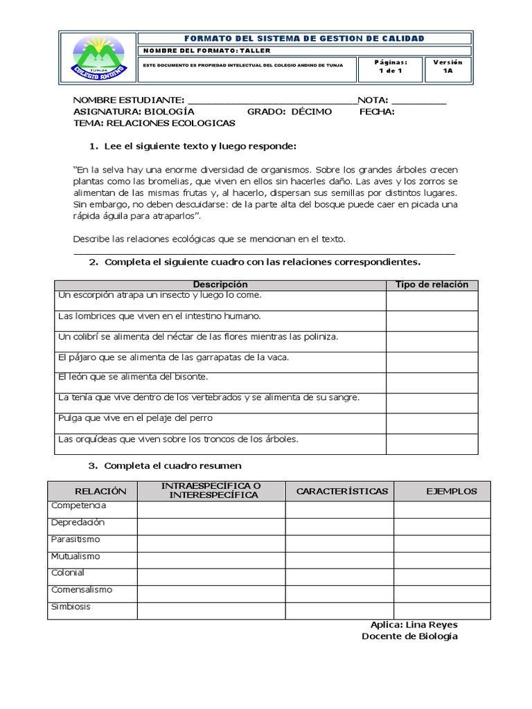 RELACIÓN INTERESPECÍFICA CARACTERÍSTICAS EJEMPLOS