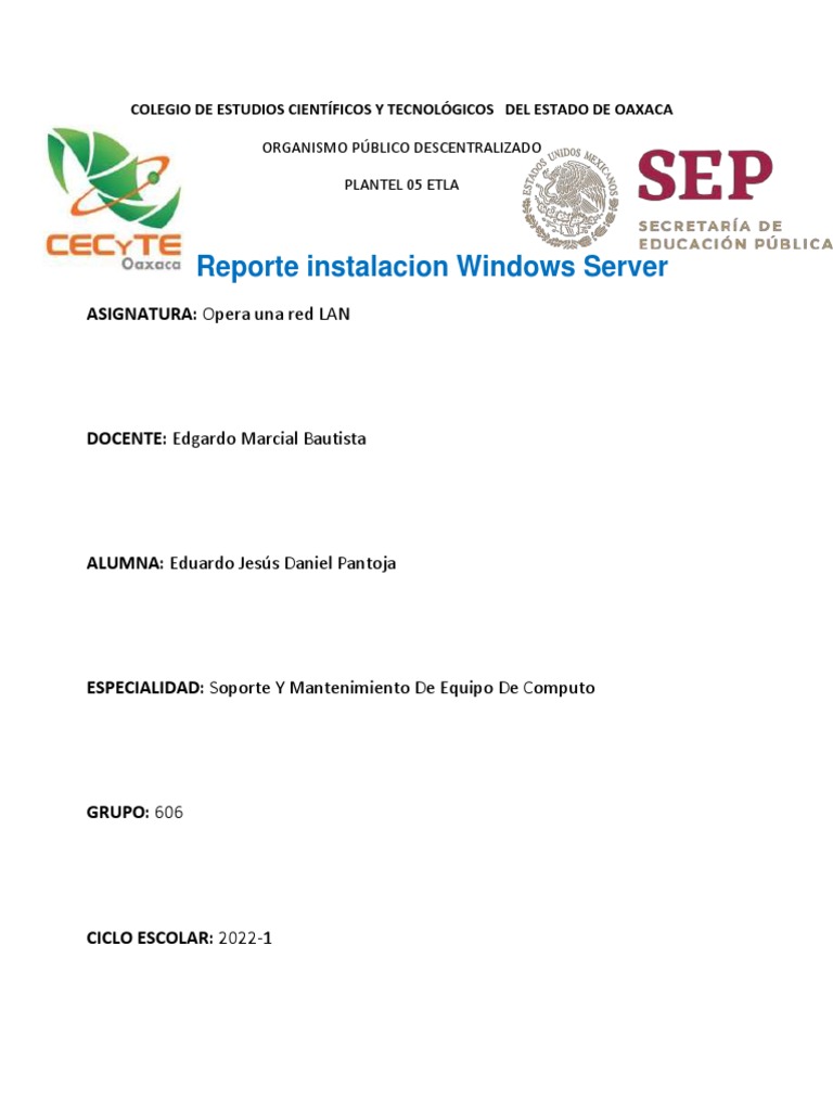 Reporte instalacion Windows Server