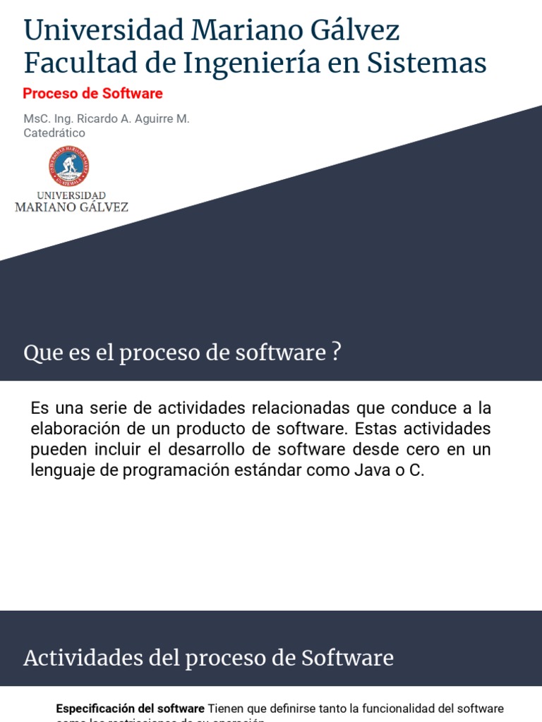 proceso de especificación, desarrollo, validación y evolución y, luego, los representa
