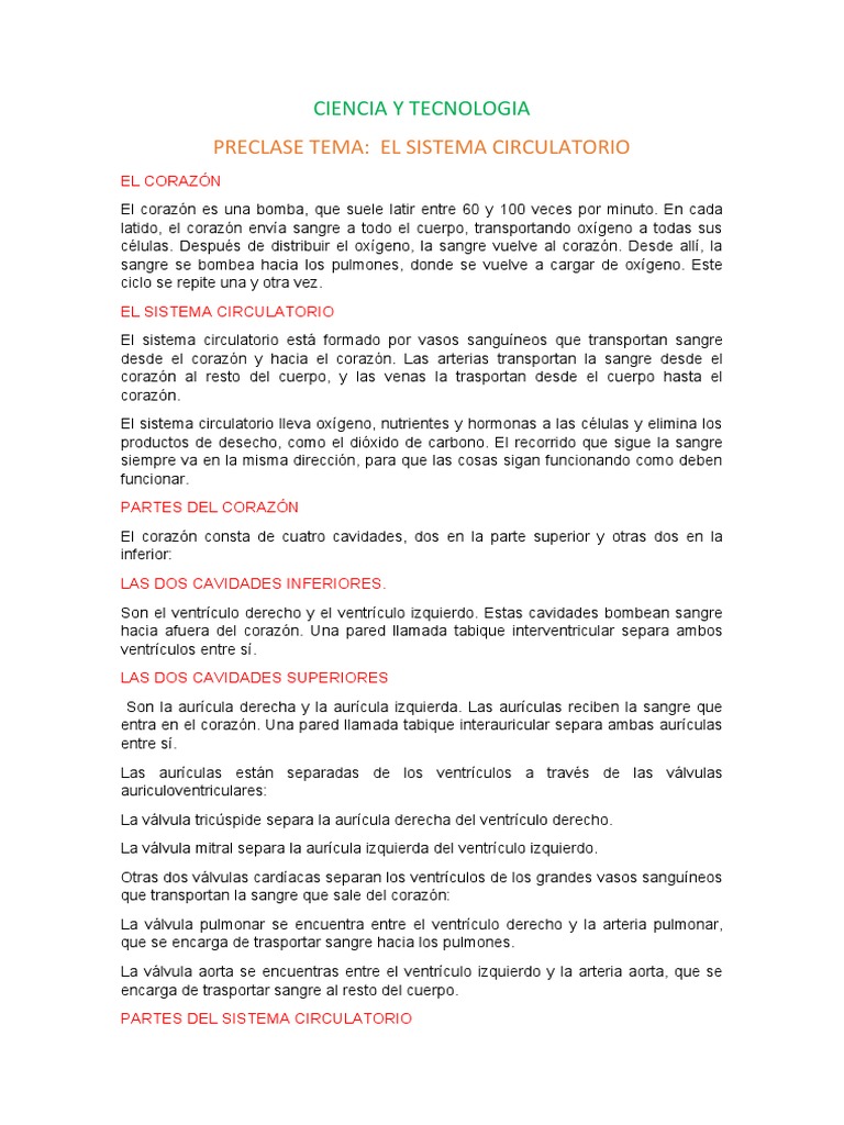 PRECLASE TEMA: EL SISTEMA CIRCULATORIO