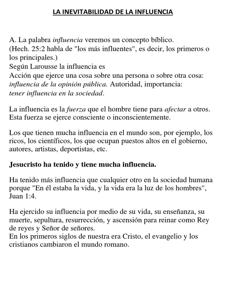 A. La palabra influencia veremos un concepto bíblico.