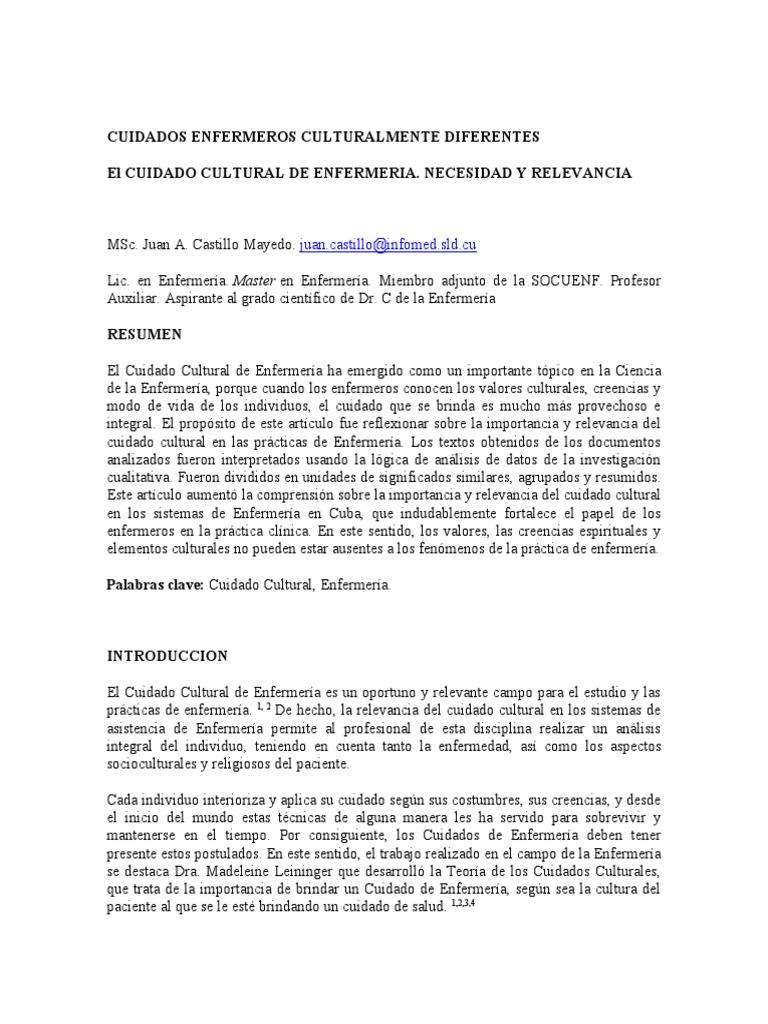 prácticas de enfermería. 1, 2 De hecho, la relevancia del cuidado cultural en los sistemas de