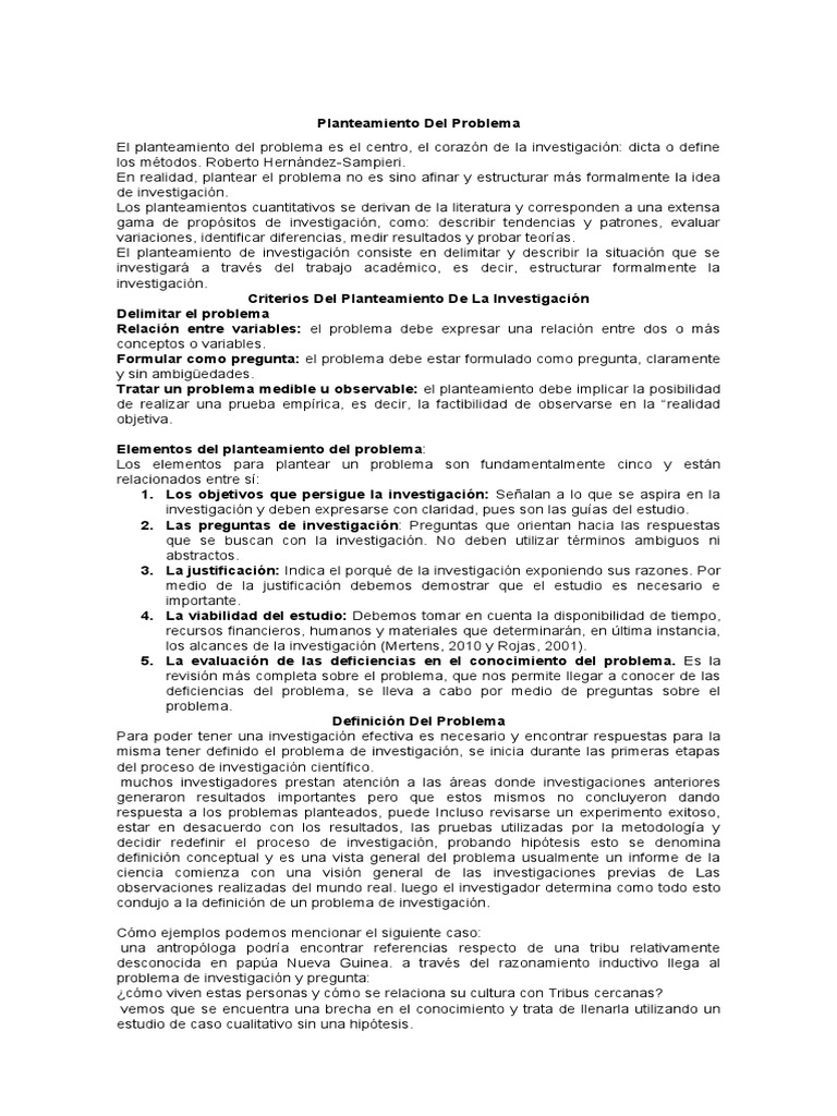 investigación, luego del planteamiento del problema. Su cometido es brindar información