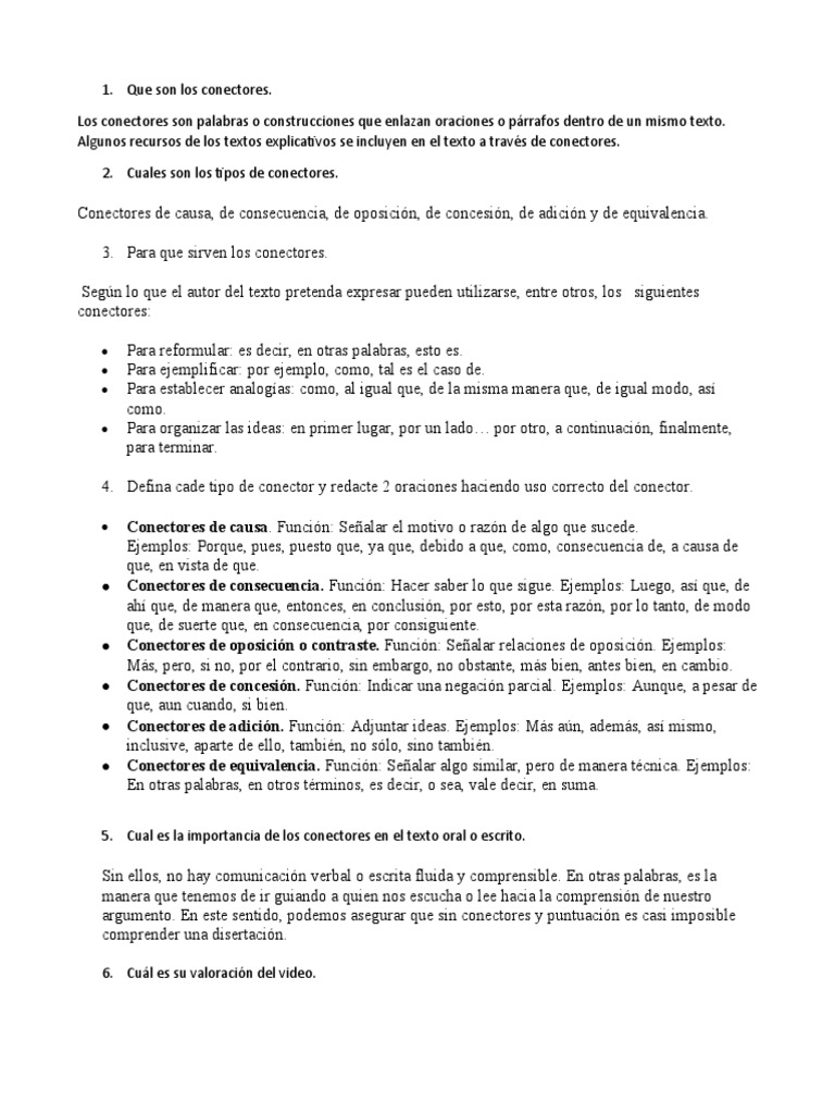 4. Defina cade tipo de conector y redacte 2 oraciones haciendo uso correcto del conector.