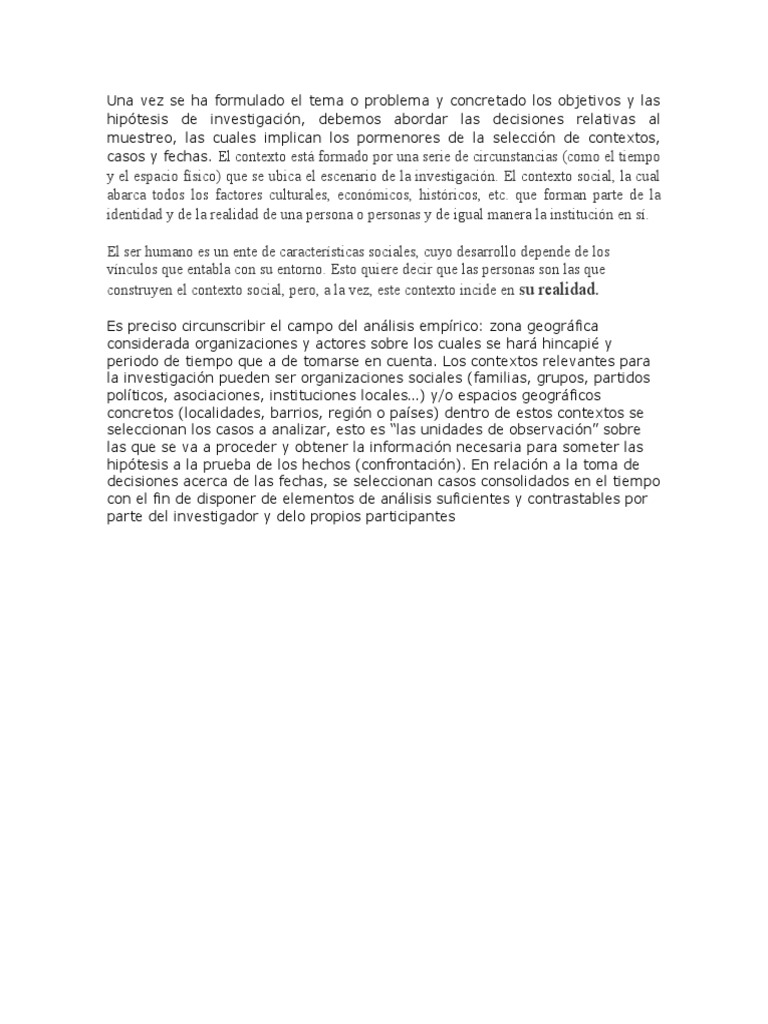 muestreo, las cuales implican los pormenores de la selección de contextos,