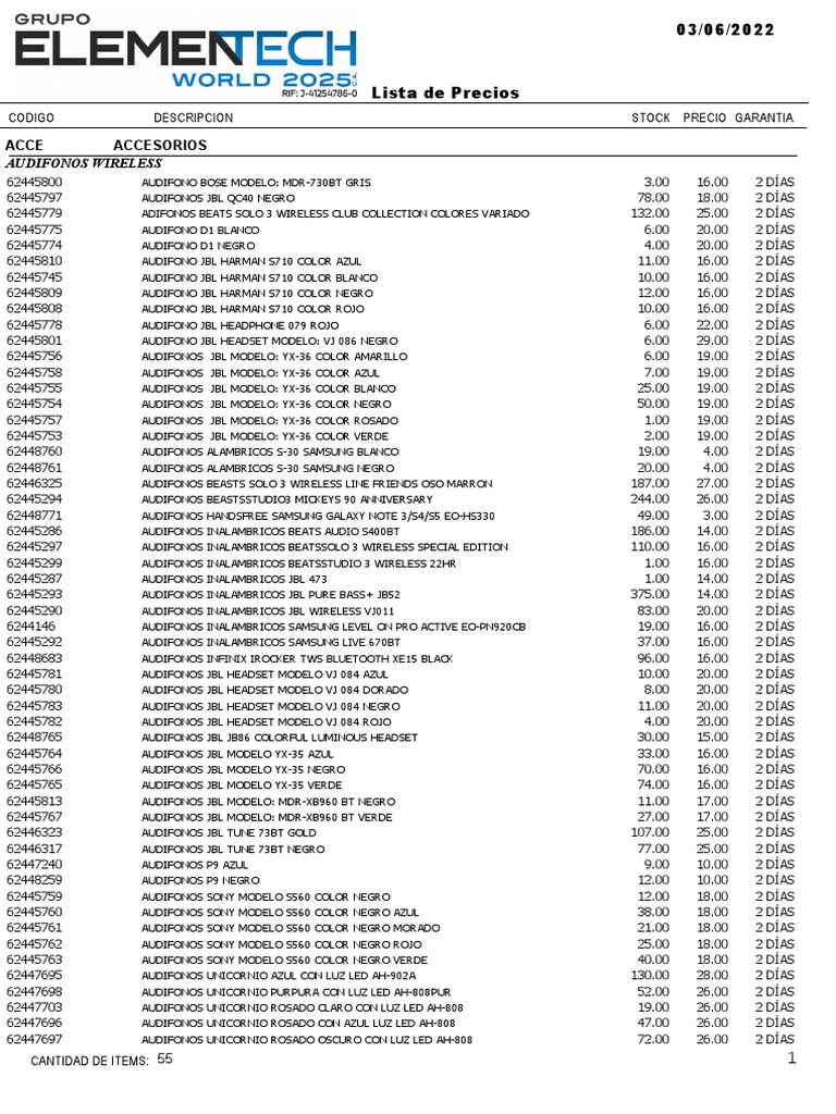 62445766 AUDIFONOS JBL MODELO YX-35 NEGRO 70.00 16.00 2 DÍAS