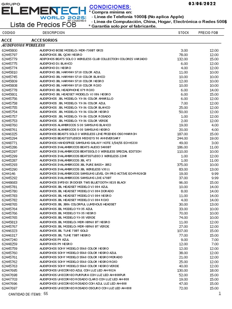 Lista de Precios FOB * Garantía solo por el fabricante.