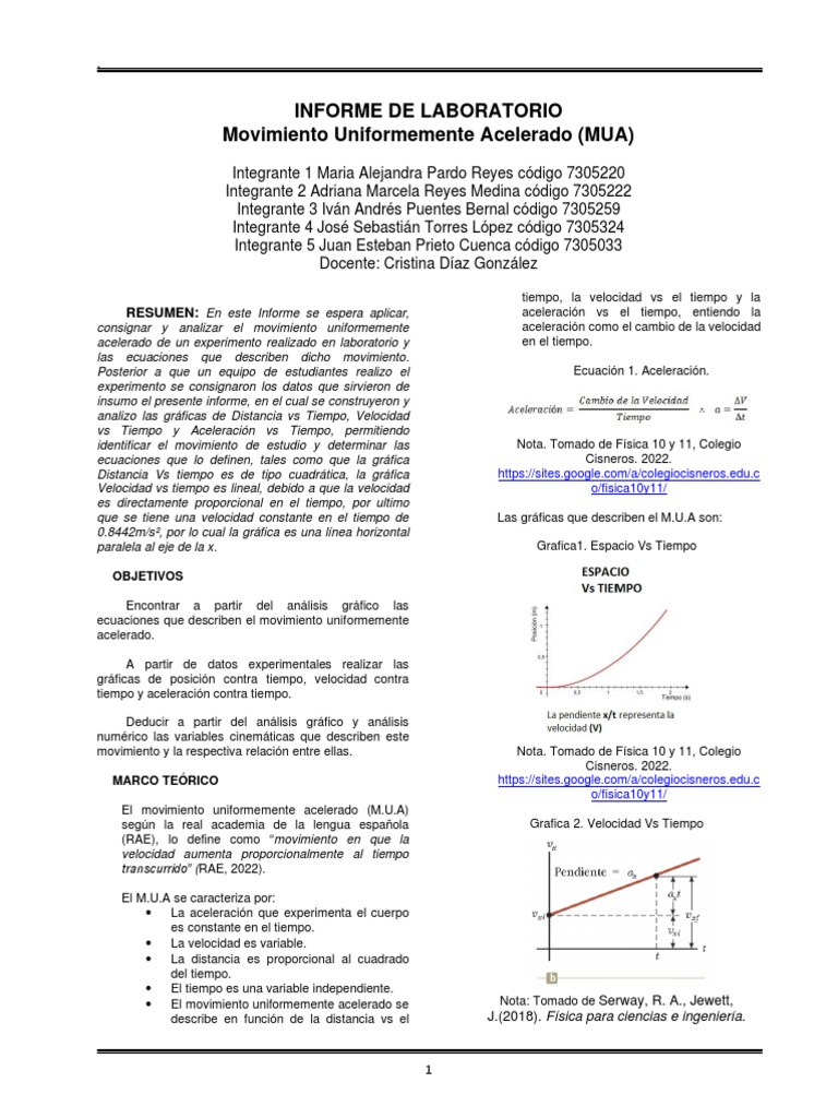 movimiento uniformemente acelerado, de la practica