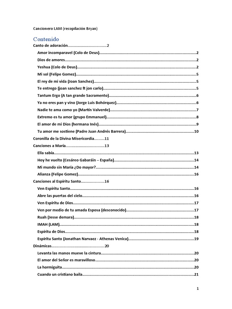 Canciones al Espíritu Santo.....................16