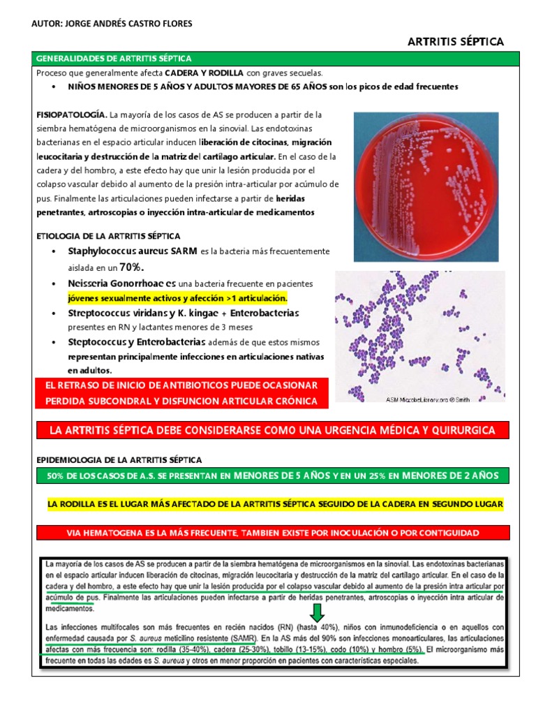 LA ARTRITIS SÉPTICA DEBE CONSIDERARSE COMO UNA URGENCIA MÉDICA Y QUIRURGICA