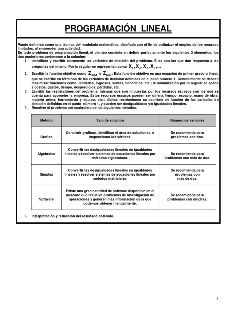 Optimización en Programación Lineal