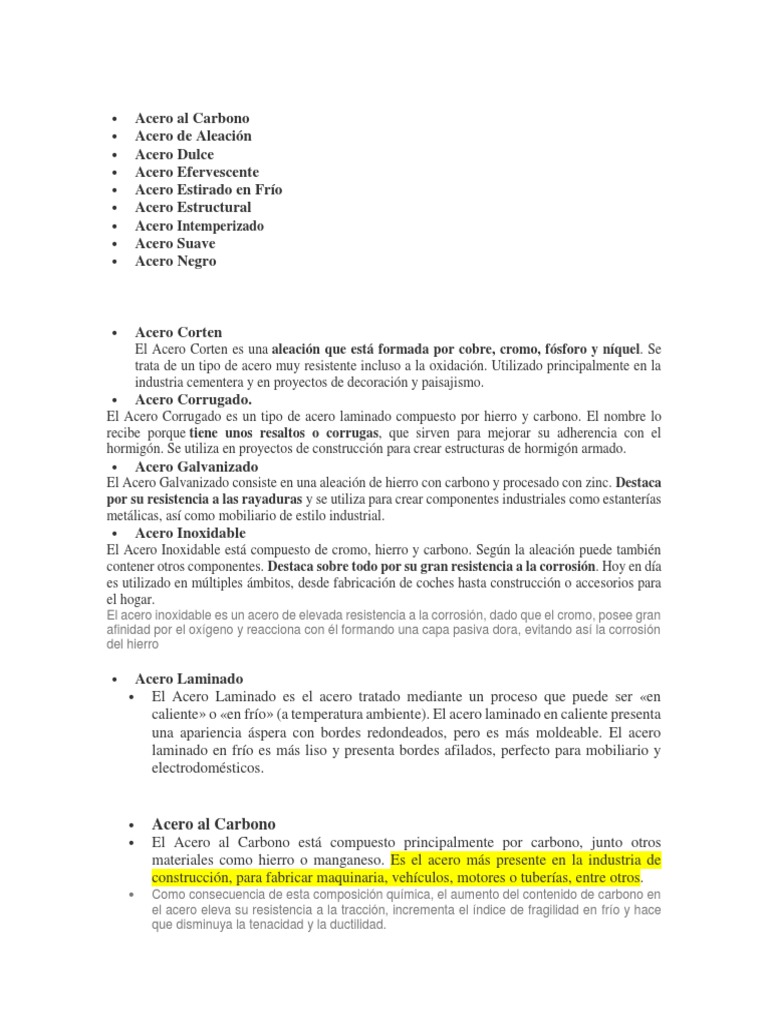 materiales como hierro o manganeso. Es el acero más presente en la industria de