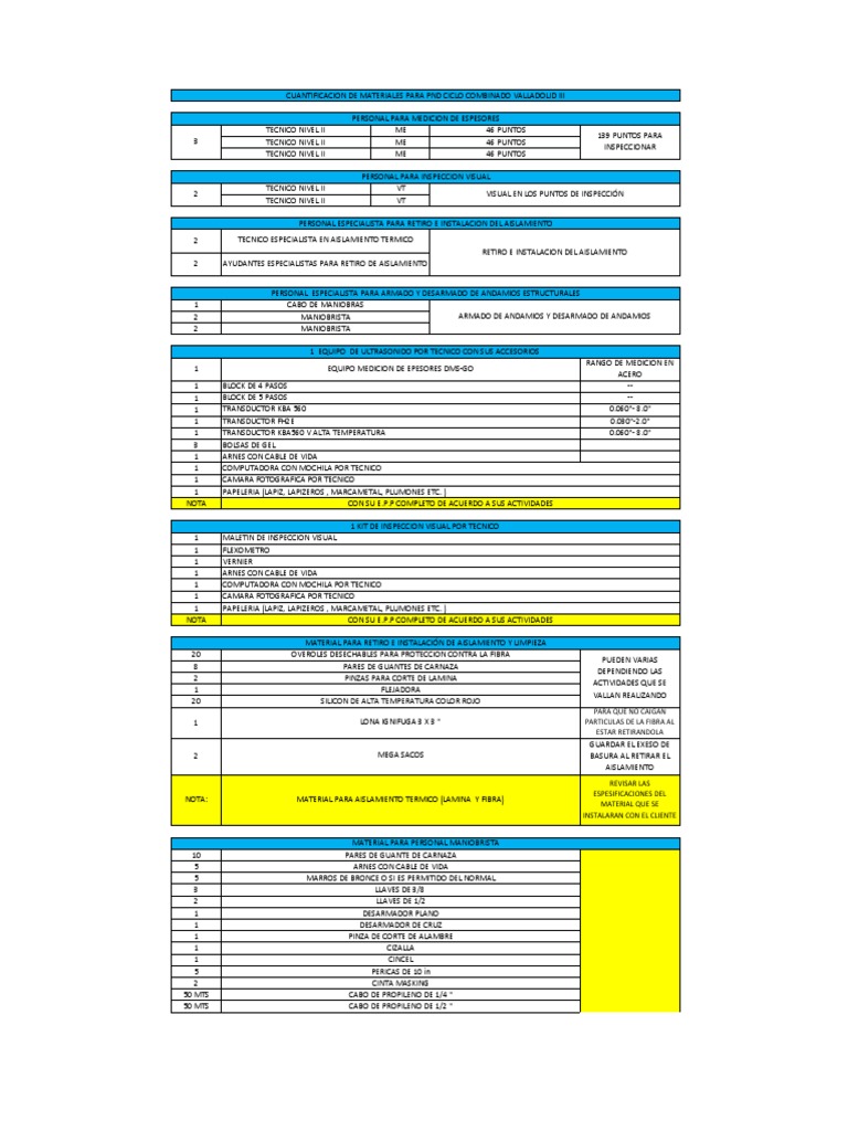 CUANTIFICACION DE MATERIALES PARA PND CICLO COMBINADO VALLADOLID III