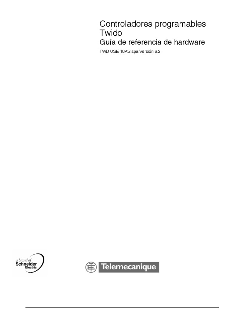 Objeto Este manual contiene descripcin de partes, caractersticas, esquemas de cableado, instalacin, configuracin e informacin de solucin de problemas para todos los productos Twido. La informacin contenida en este manual slo es aplicable a los productos Twido.