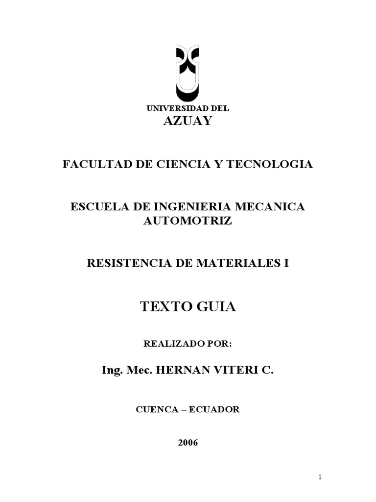 La Resistencia de Materiales amplía el estudio de las fuerzas que se inició en la estática,