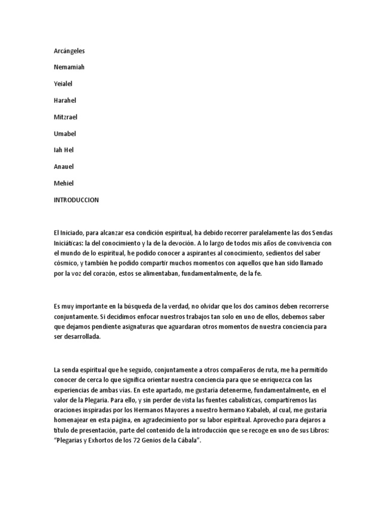“El repertorio de Potencias Celestiales a las que van dedicadas estas Plegarias, procede de la