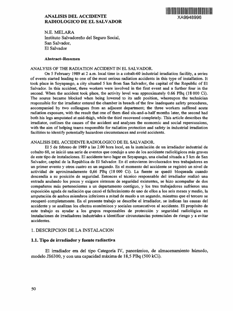 ANÁLISIS DEL ACCIDENTE RADIOLÓGICO DE EL SALVADOR.