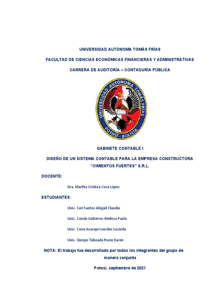 La Empresa Constructora “CIMIENTOS FUERTES” S.R.L., define a los