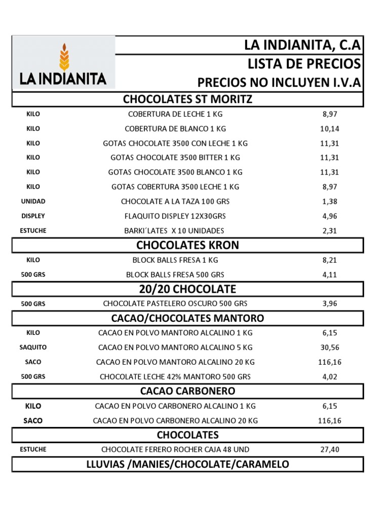 LISTA DE PRECIOS