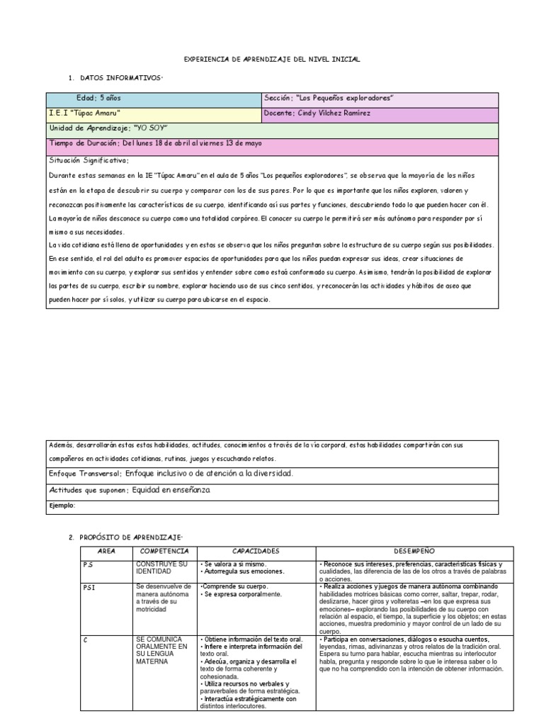 las partes de su cuerpo, escribir su nombre, explorar haciendo uso de sus cinco sentidos, y reconocerán las actividades y hábitos de aseo que