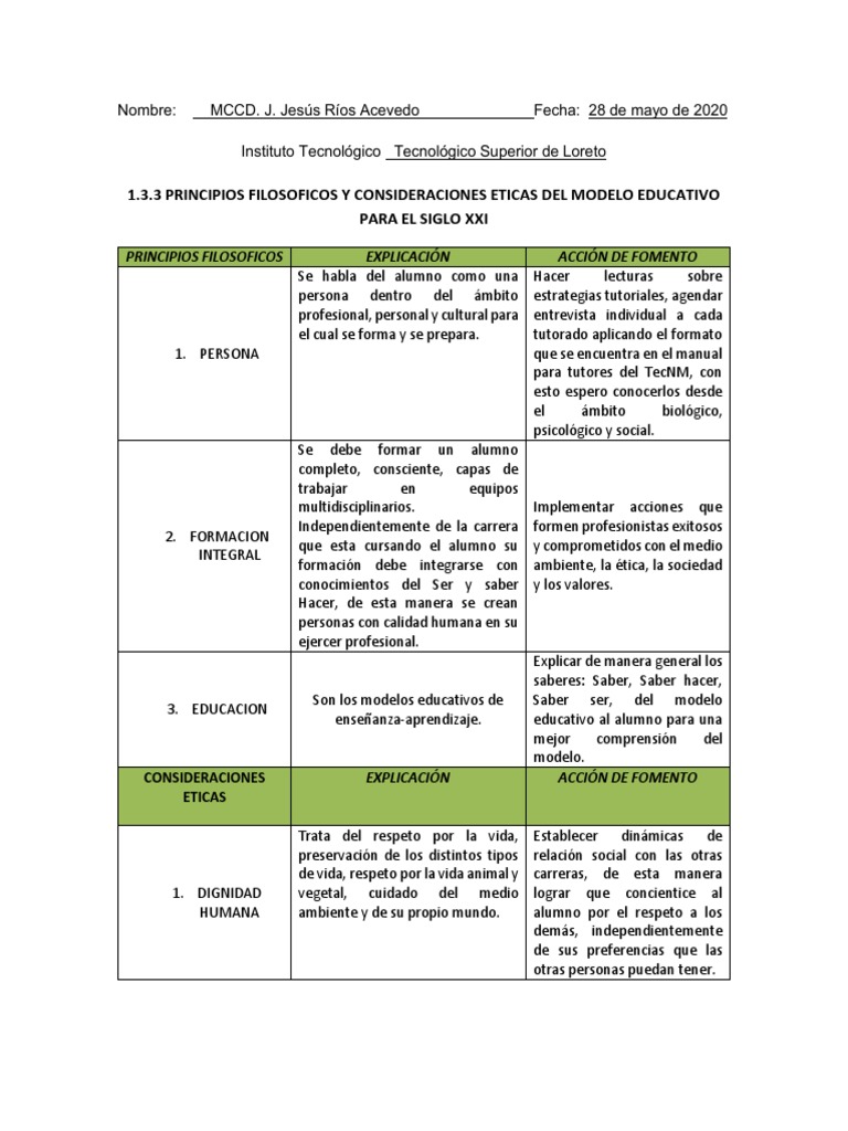 1.3.3 PRINCIPIOS FILOSOFICOS Y CONSIDERACIONES ETICAS DEL MODELO EDUCATIVO