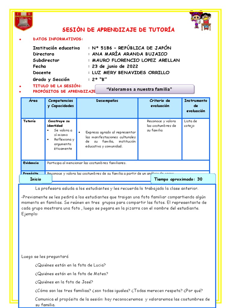 SESIÒN DE APRENDIZAJE DE TUTORÍA
