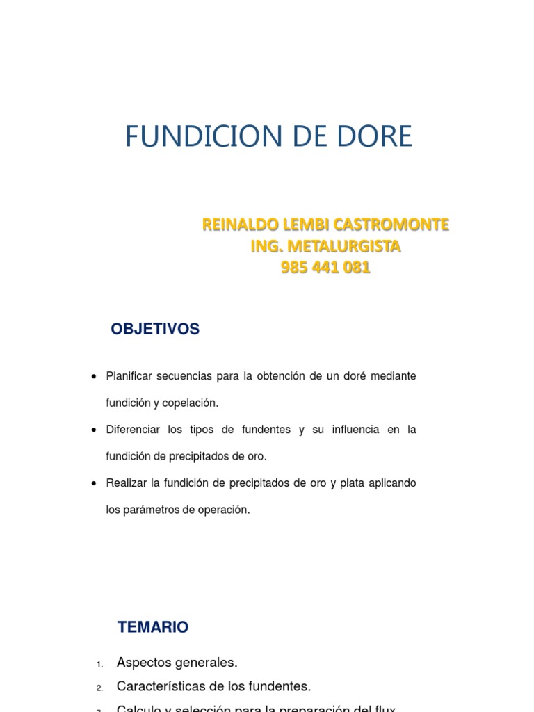 El Doré es una aleación de Au y Ag. El objetivo del proceso de fundición o