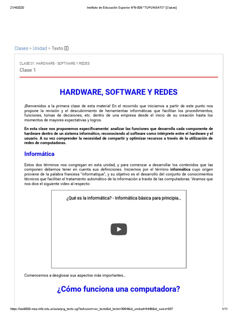 CLASE 01: HARDWARE - SOFTWARE Y REDES