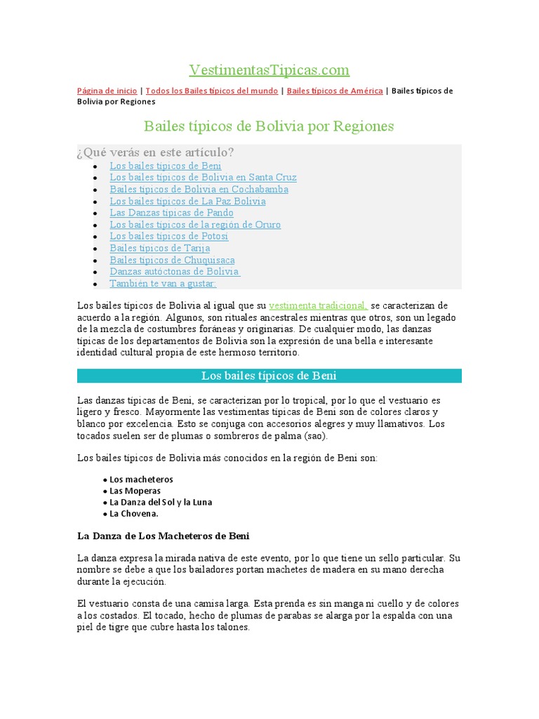 típicas de los departamentos de Bolivia son la expresión de una bella e interesante