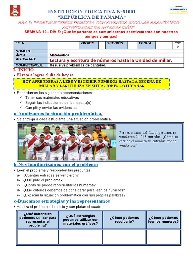 I.E. N° GRADO: SECCIÓN: FECHA: 202