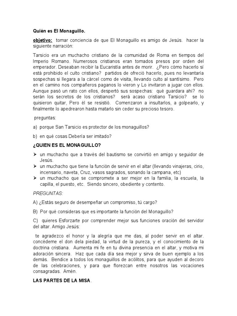 objetivo: tomar conciencia de que El Monaguillo es amigo de Jesús. hacer la
