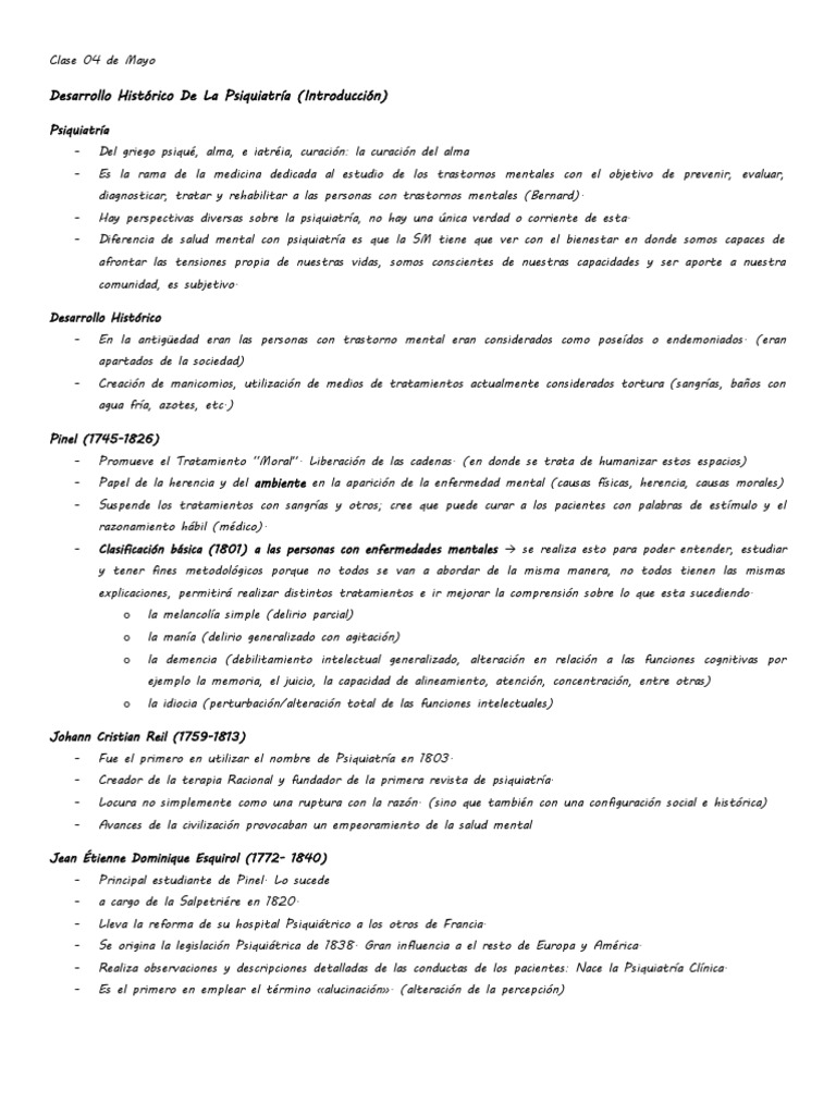 - Clasificación básica (1801) a las personas con enfermedades mentales se realiza esto para poder entender, estudiar